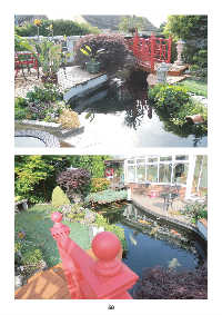 style bridge spans the pond area where a Burtons drum filter feeds water to a