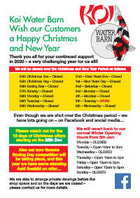 shop opens and on the days we are closed – www.koiwaterbarn.co.uk