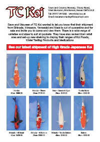 ● Medicarp & Kusuri range of Koi foods ● Large range of filters in stock including: