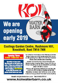 Opening Times Koi Water Barn are moving a short distance to Coolings